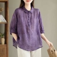 軟軟親膚不悶熱 五分泡泡袖剛好藏住肉肉 前襟半扣設計簡單好看 顯高又顯瘦 怎麼穿都耐看